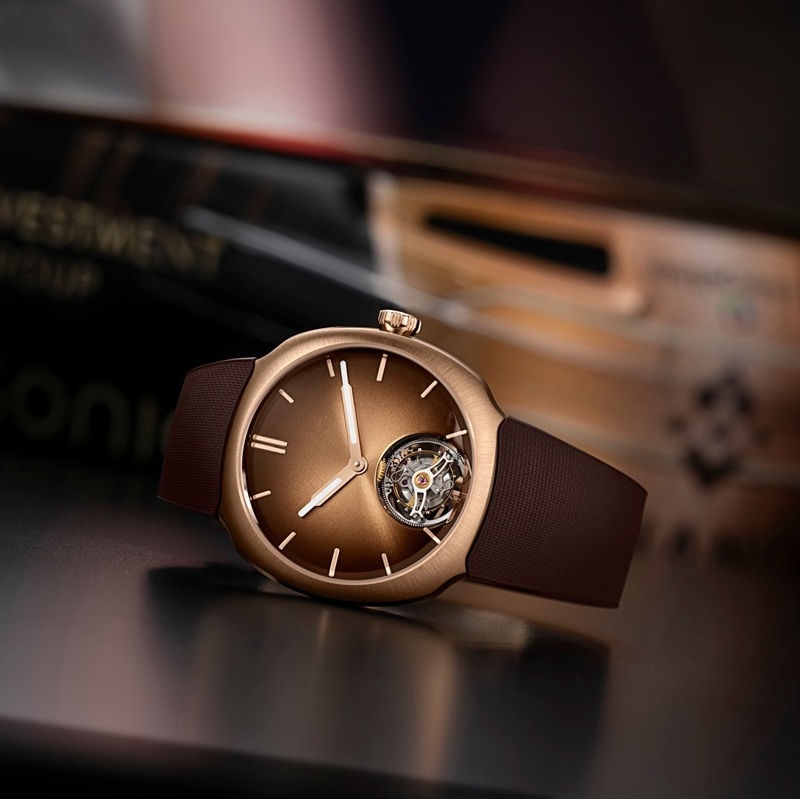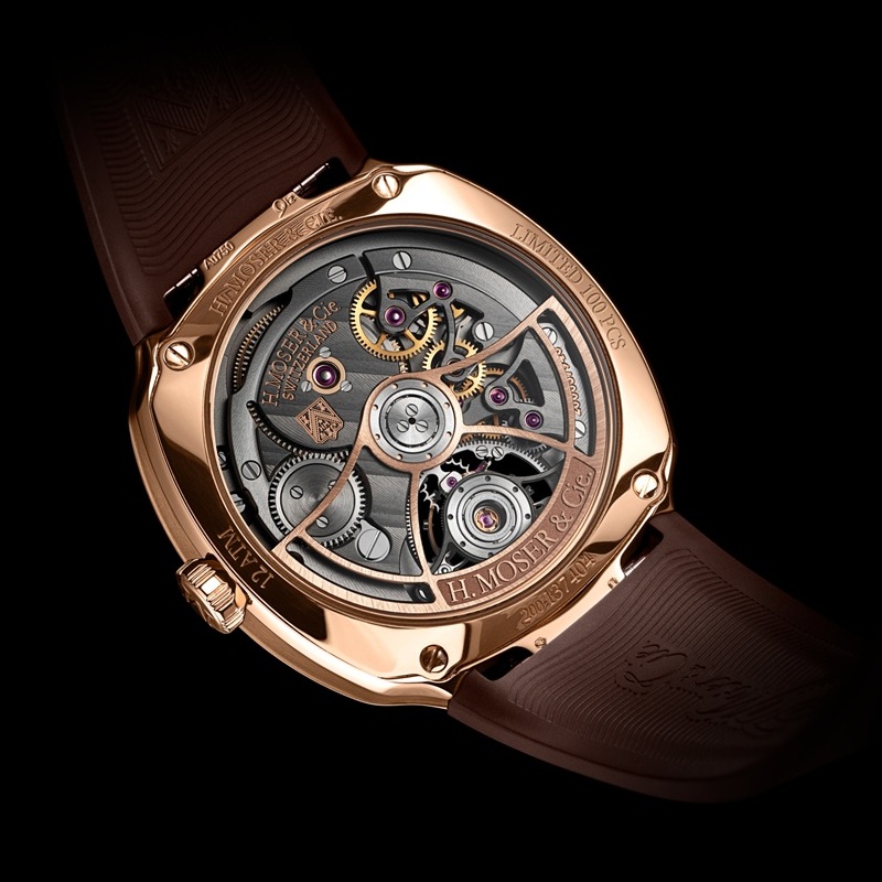 機能・特徴 | 6時位置のミニッツ フライング トゥールビヨン ラチェット式両方向自動巻きシステム 18Kレッドゴールド製スケルトン ローター グロボライト® インサート付きの時針および分針 ケースと一体型の5N レッドゴール製ラバーストラップ 100本限定 |